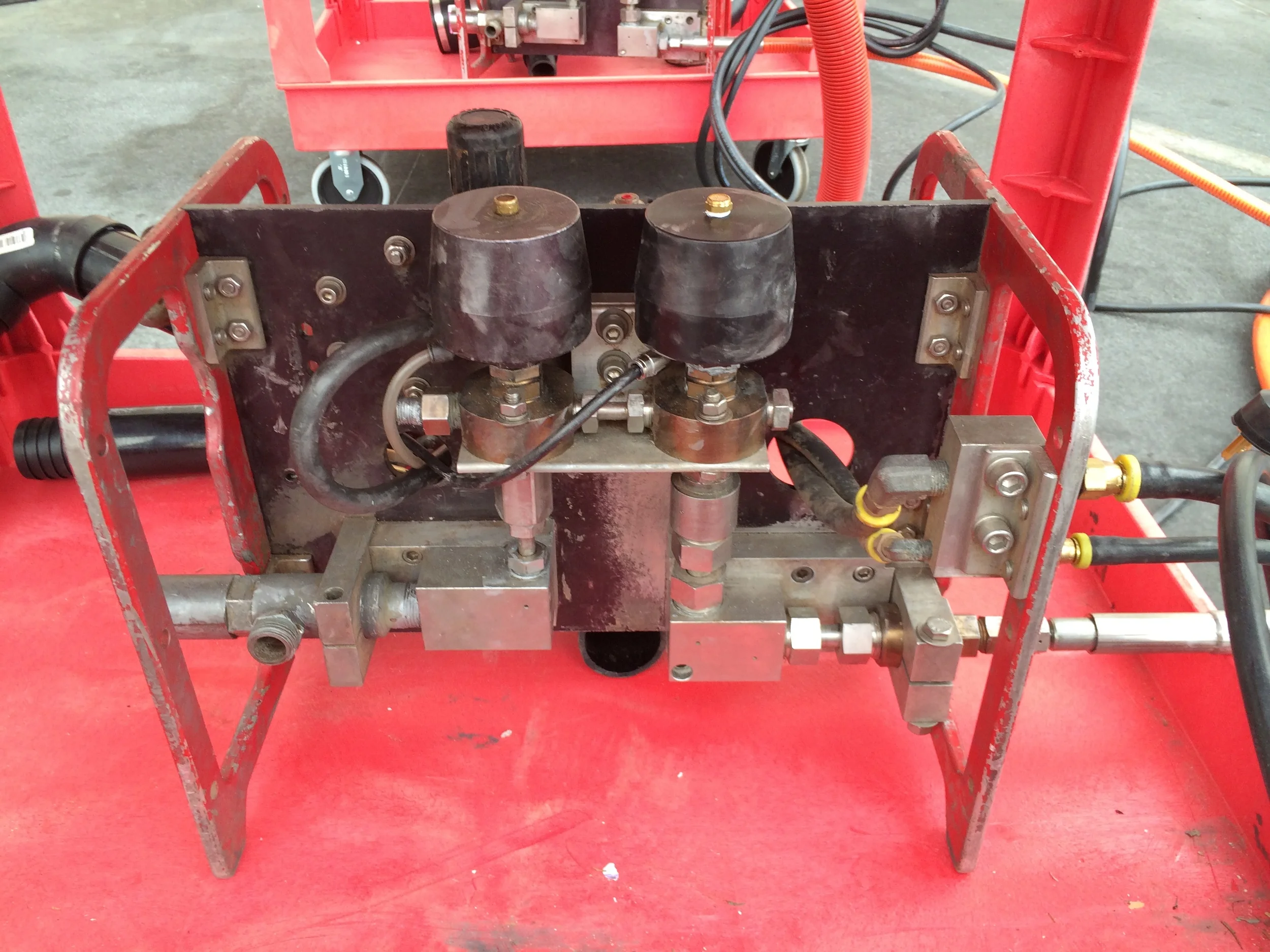Removing floor coatings from projects can be a real hasslse and also put you at liability for floor damage. Old abrasive floor blast systems and even the old style hydroblast systems were designed to remove the coatings but the damage to the floor was almost unavoidable. With Pearson Enterprises Wolf 12-VRU set into the floor configuration its possible to remove all types of floor coatings and contaminants including lead paints and asbestos mastic to clean undamaged concrete. Our secret is our custom designed, engineered and manufactured blasting bars. All of our targeting and blasting systems are custom designed and manufactured to our specifications to ensure that surfaces are cleaned down to original, leaving them nearly totaly undamaged. We can also operate 4 of the 12 inch systems per shift off of one pump. With this system mastic removal of up to 20,000 sf per day can be acheived. All of the water created during the operation is auto loaded out in our PATENTED MPPS-15e